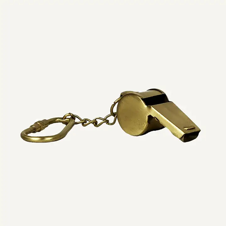 Crafted from solid brass, this compact safety whistle is a timeless essential for peace of mind. With a strong, reliable sound, it’s the perfect addition to any emergency kit or outdoor adventure gear. The unlacquered finish develops a natural patina over time, giving each piece its own unique character.