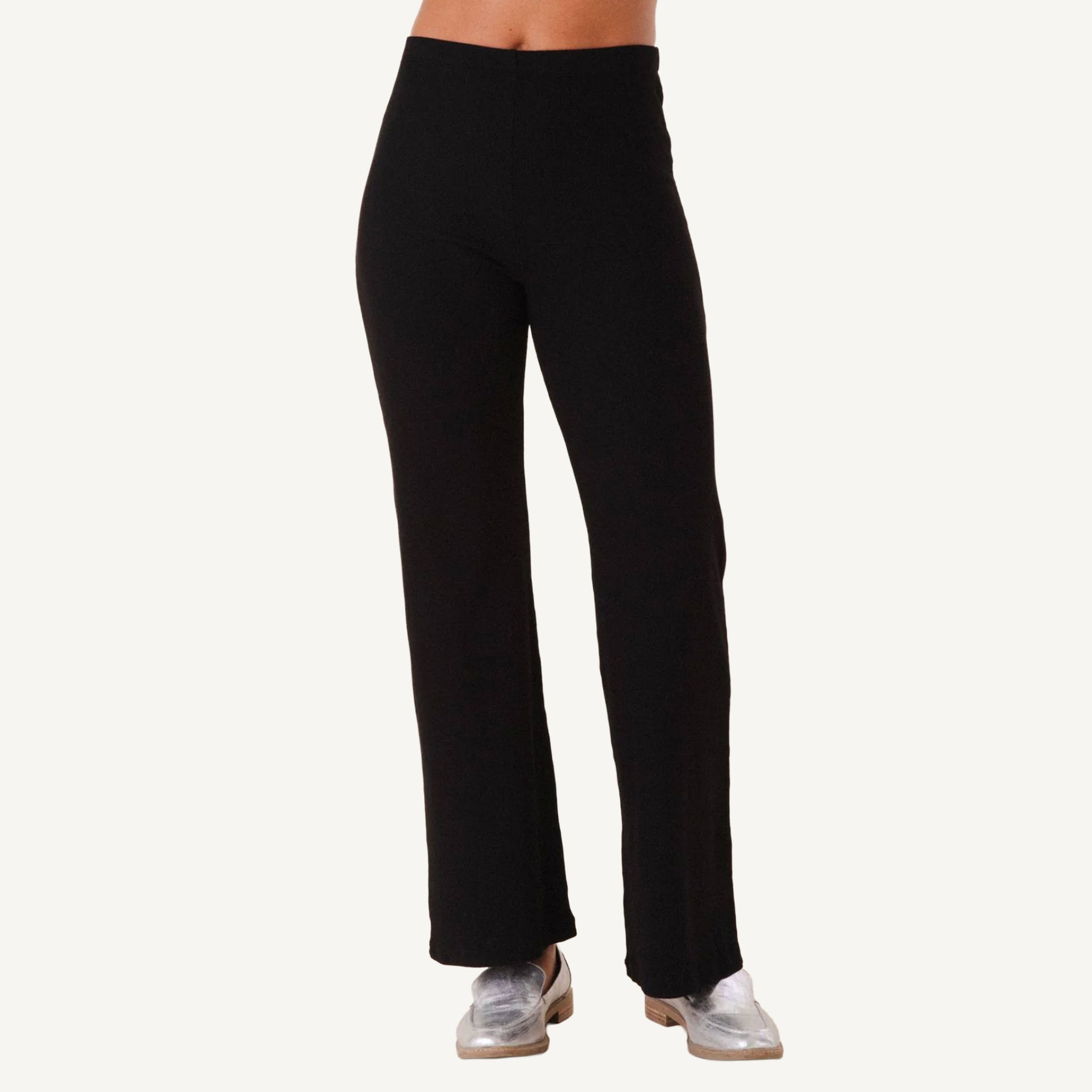 Our beloved organic cotton rib has been deployed to create a long, flared legging. The thick organic cotton and spandex textile is breathable, body-smoothing, and sturdy. They are suitable for exercise, lounging, or any time you would wear a legging.