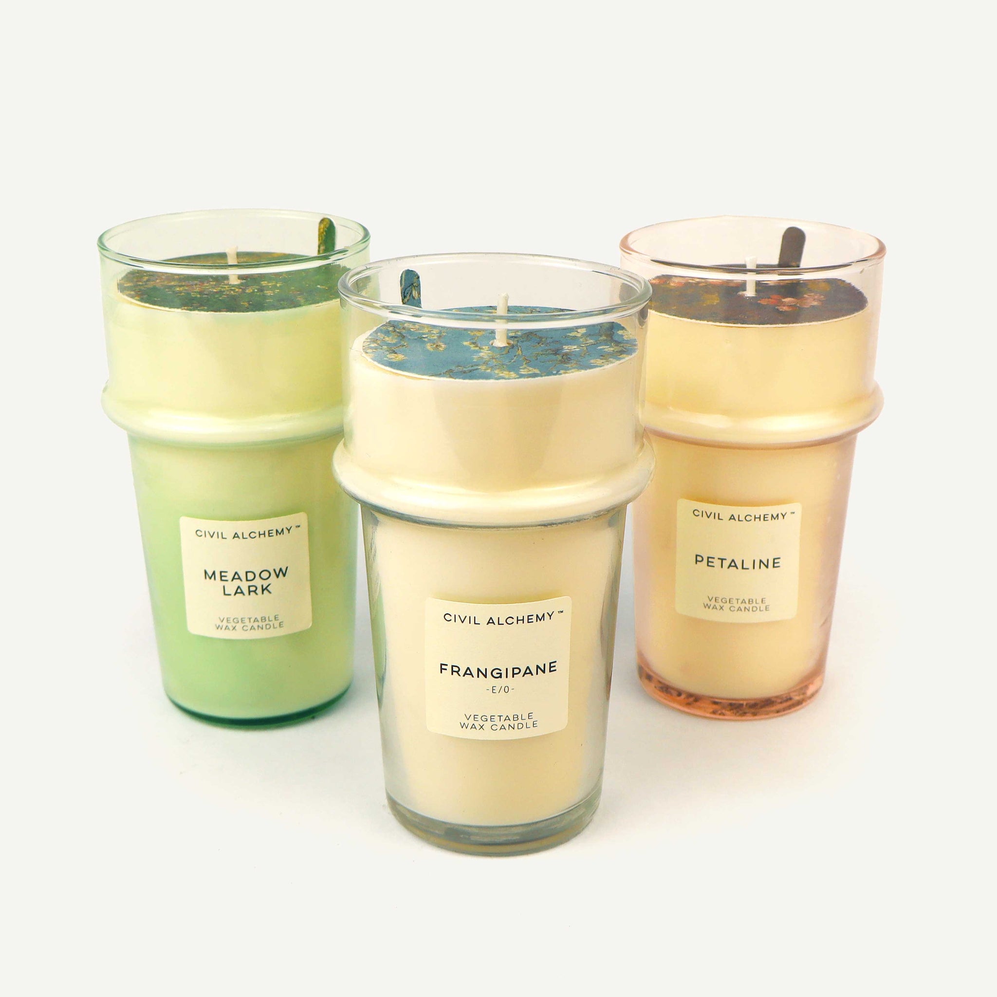 Soft, airy, and delicately floral, the Petaline Hand-Poured Candle fills any space with gentle warmth. Notes of crisp apple, fresh thyme, light ozone, and a hint of powder create a balanced scent that feels both refreshing and comforting. Hand-poured in St. Louis using a pure vegetable wax blend, this candle offers a clean, even burn and a naturally inviting glow. Each piece is finished with a randomly selected cover, making every candle uniquely your own.