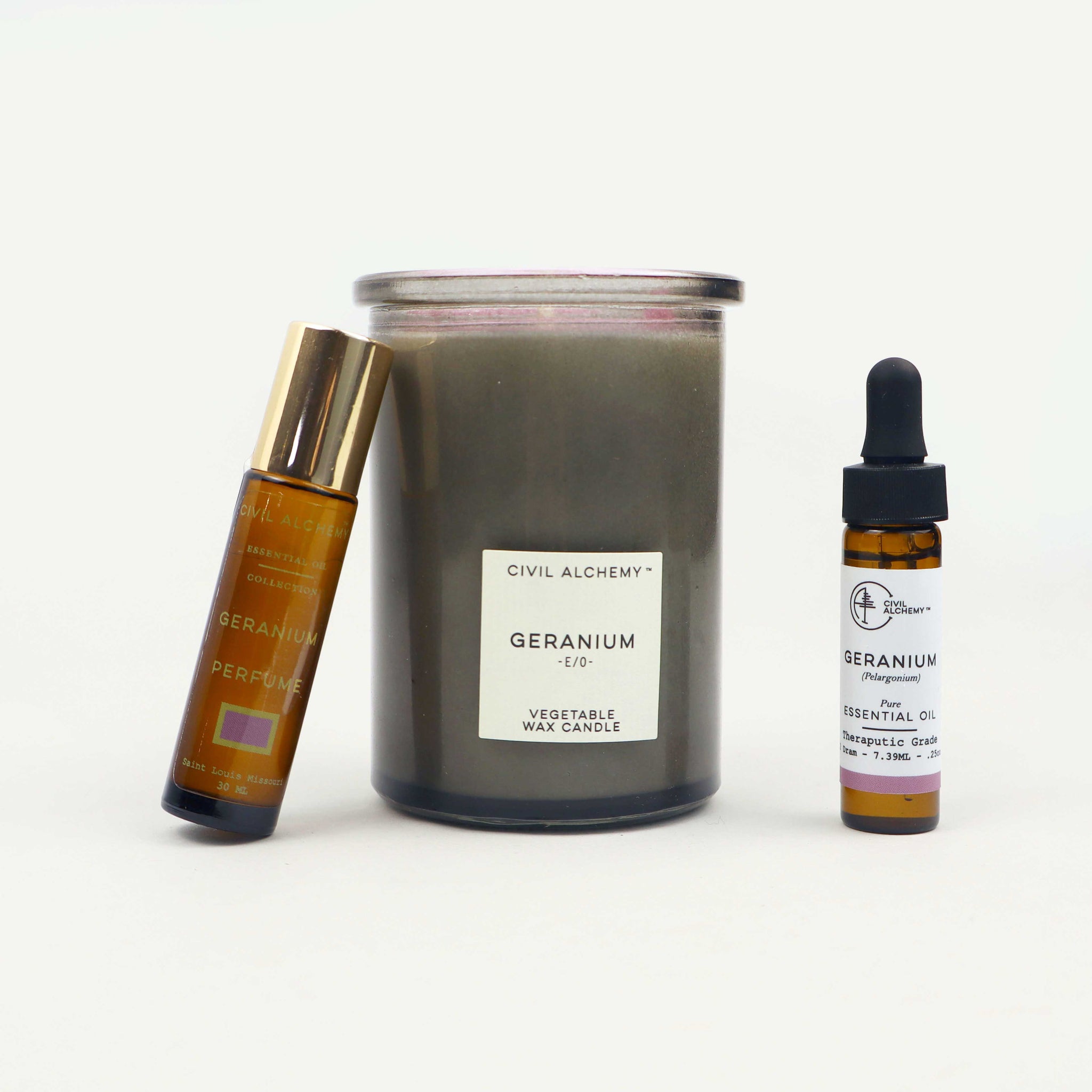 Our Pure Essential Oil Candle in Geranium is crafted with unaltered, therapeutic-grade essential oils and designed to create a calm, balanced atmosphere. Geranium essential oil offers a soft floral aroma often associated with relaxation and grounding. Each candle is hand-poured in St. Louis using a pure vegetable wax for a clean, steady burn.