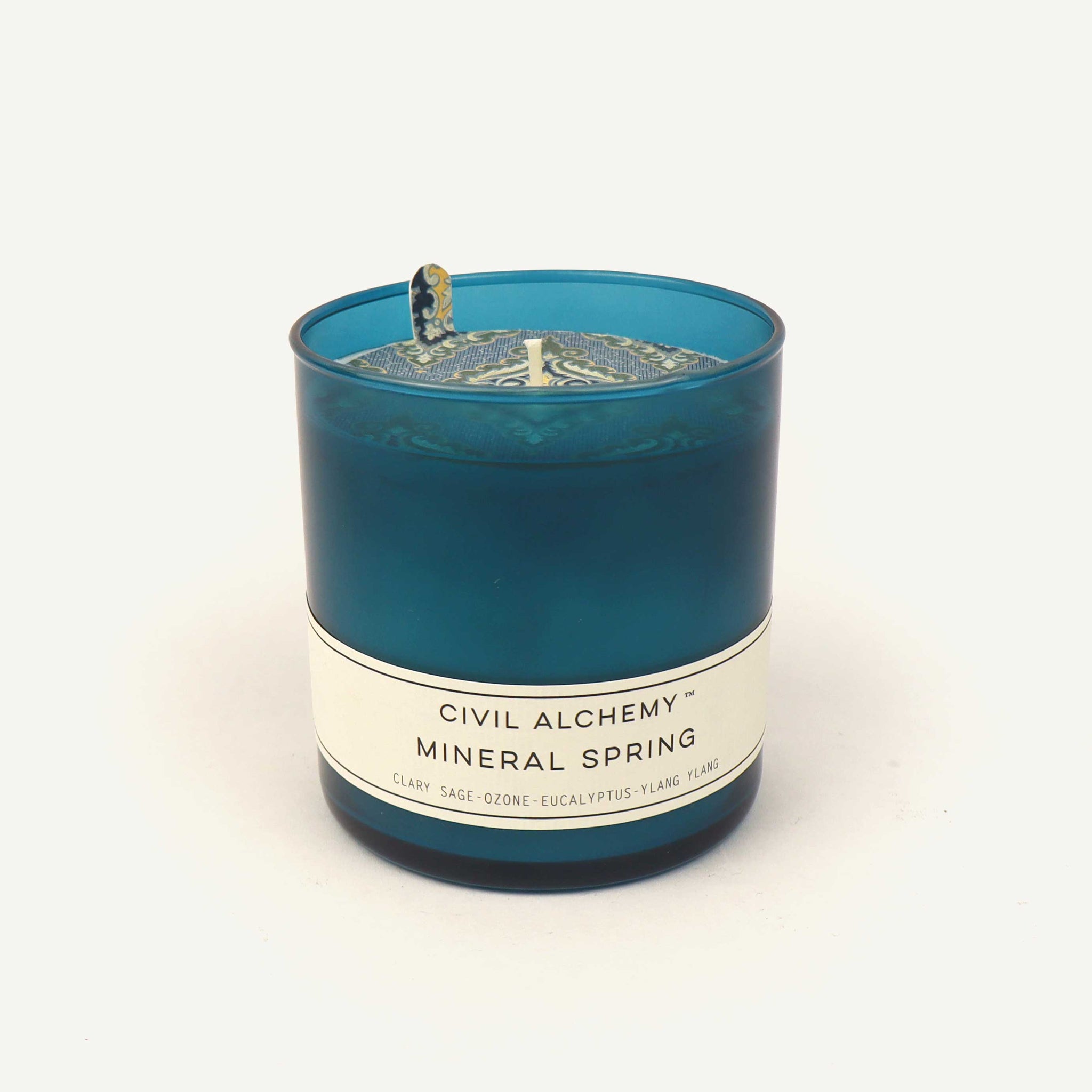 The Mineral Spring Hand-Poured Candle brings a serene, herbaceous freshness to any space. Featuring notes of clary sage, eucalyptus, lavender, ylang ylang, and sandalwood, this candle captures the calming essence of a walk through nature after rainfall. Each 15 oz candle is hand-poured in St. Louis using a pure, natural vegetable wax blend and housed in an iridescent glass container. Candle covers are selected at random, adding a unique finishing touch.