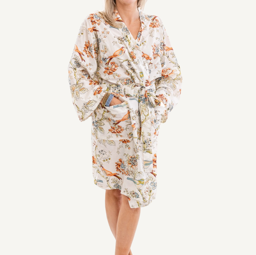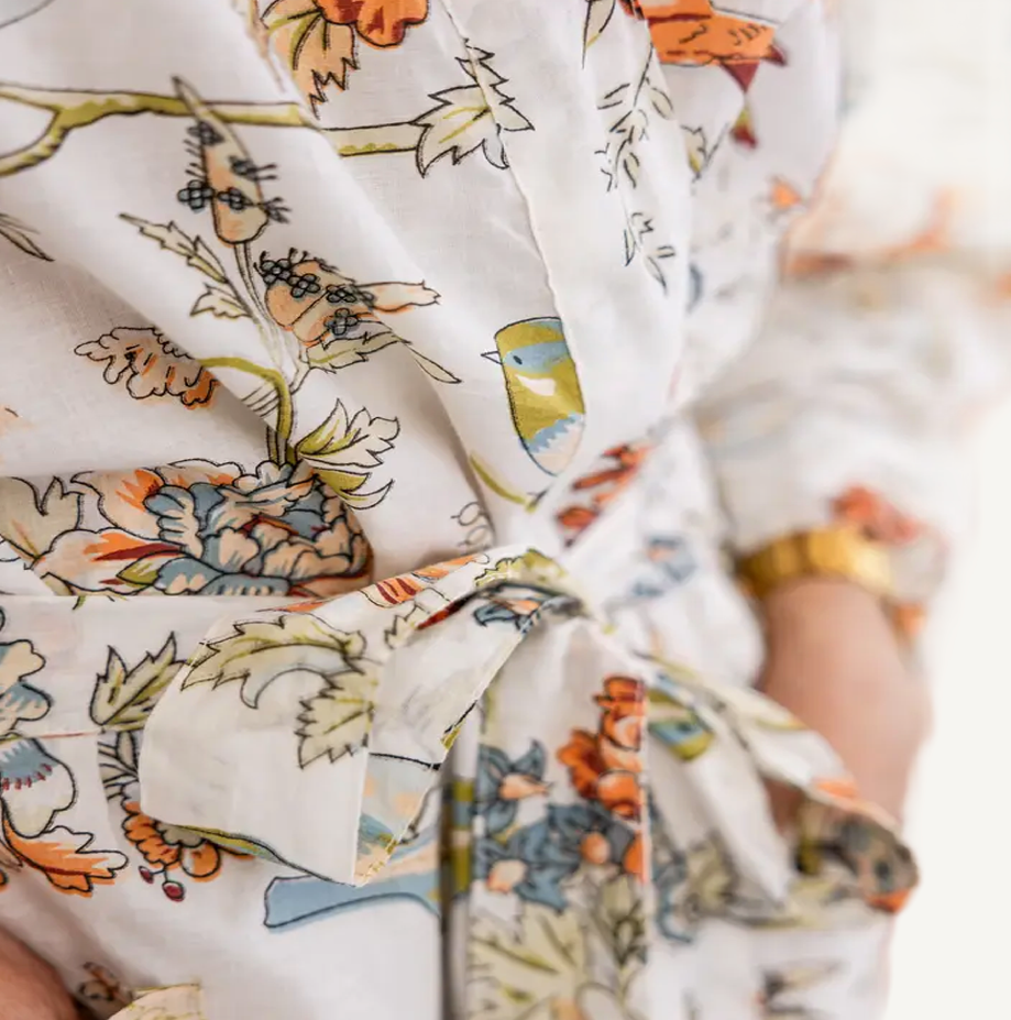This Screen Print Cotton Robe Knee Length has been lovingly crafted by our artisan partner, who has been providing employment to families for over 30 years. Known for their exceptional quality and compassionate treatment of workers, this 100% cotton robe measures 40 inches in length and should be hand-washed or gently machine-washed in cold water.