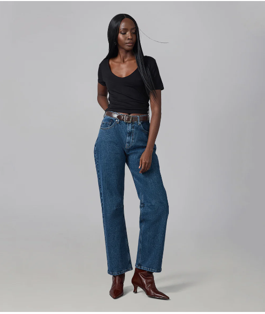 The DYLAN High Rise Barrel Jean redefines casual cool with its relaxed, curved-leg silhouette. A high waist keeps it flattering, while the barrel shape adds to the modern edge. The Dylan features 5 pocket styling and a deep blue wash.