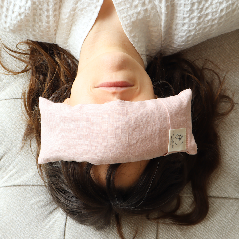 The Herbal Eye Pillow offers gentle weight and calming aromatherapy to ease tension and support rest. Filled with flax seeds and a blend of lavender, mint, and chamomile, it provides soothing pressure for relaxation, meditation, or winding down at the end of the day. The stonewashed linen cover—crafted in Lithuania—is removable, breathable, and available in four soft colors.