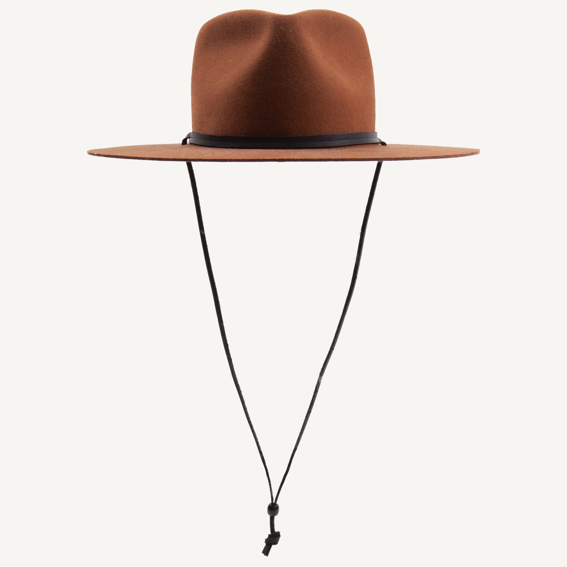 The Jones Hat by Civil Alchemy is a refined nod to timeless Western style, designed for both everyday wear and outdoor adventure. Crafted from premium felted wool with a wide, stiff brim, it features a leather strap and an adjustable leather cord with a wood bead closure to keep it snug during impromptu outings. Handcrafted by skilled milliners in the U.S.A., this unisex hat is equally at home on the river fly fishing, hiking trails, or city streets. With its enduring design and high-quality materials, the Jones Hat only grows better with age.