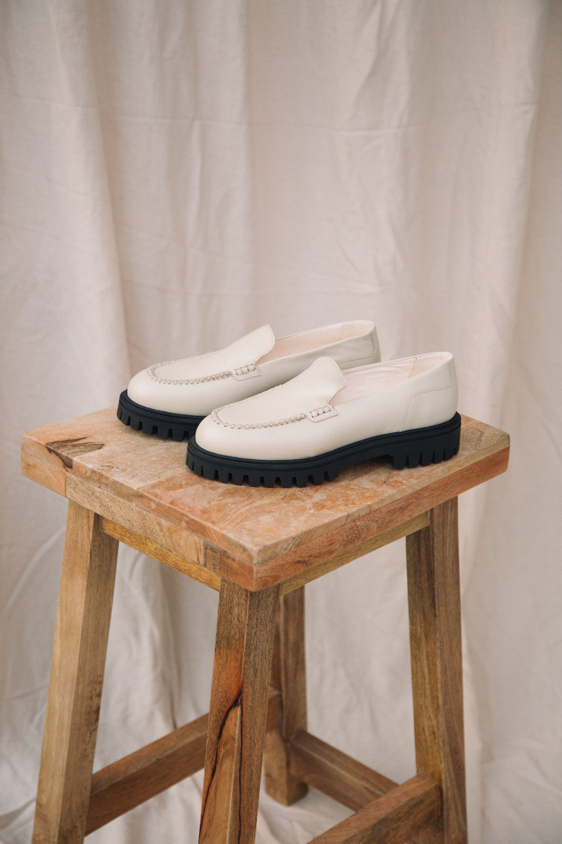 New in for this season, the Kutsu Sand Leather Shoe is the classic leather loafer shoe for Autumn. Features a small chunky heel.