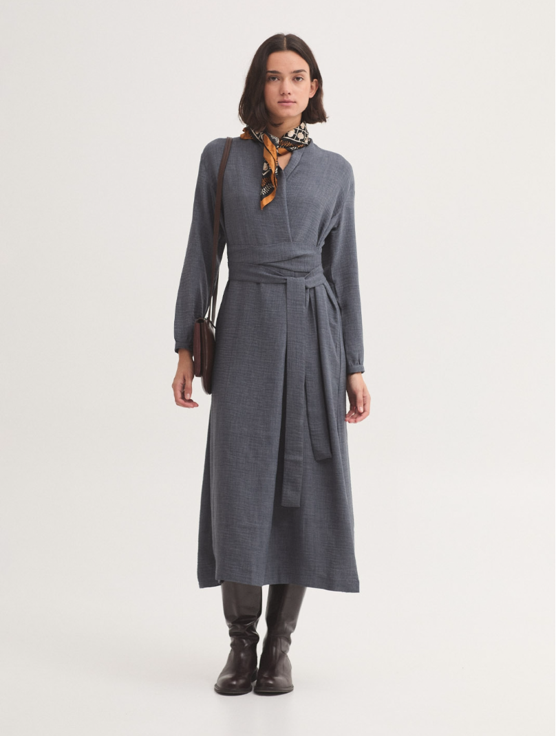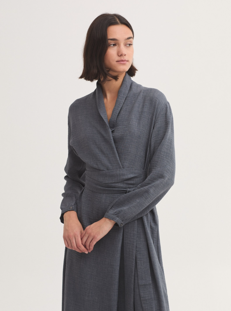 Effortless, flattering, and versatile, the Melange Wrap Dress is a wardrobe classic designed to move with you. This dress features a classic wrap silhouette that ties at the waist for a custom fit.