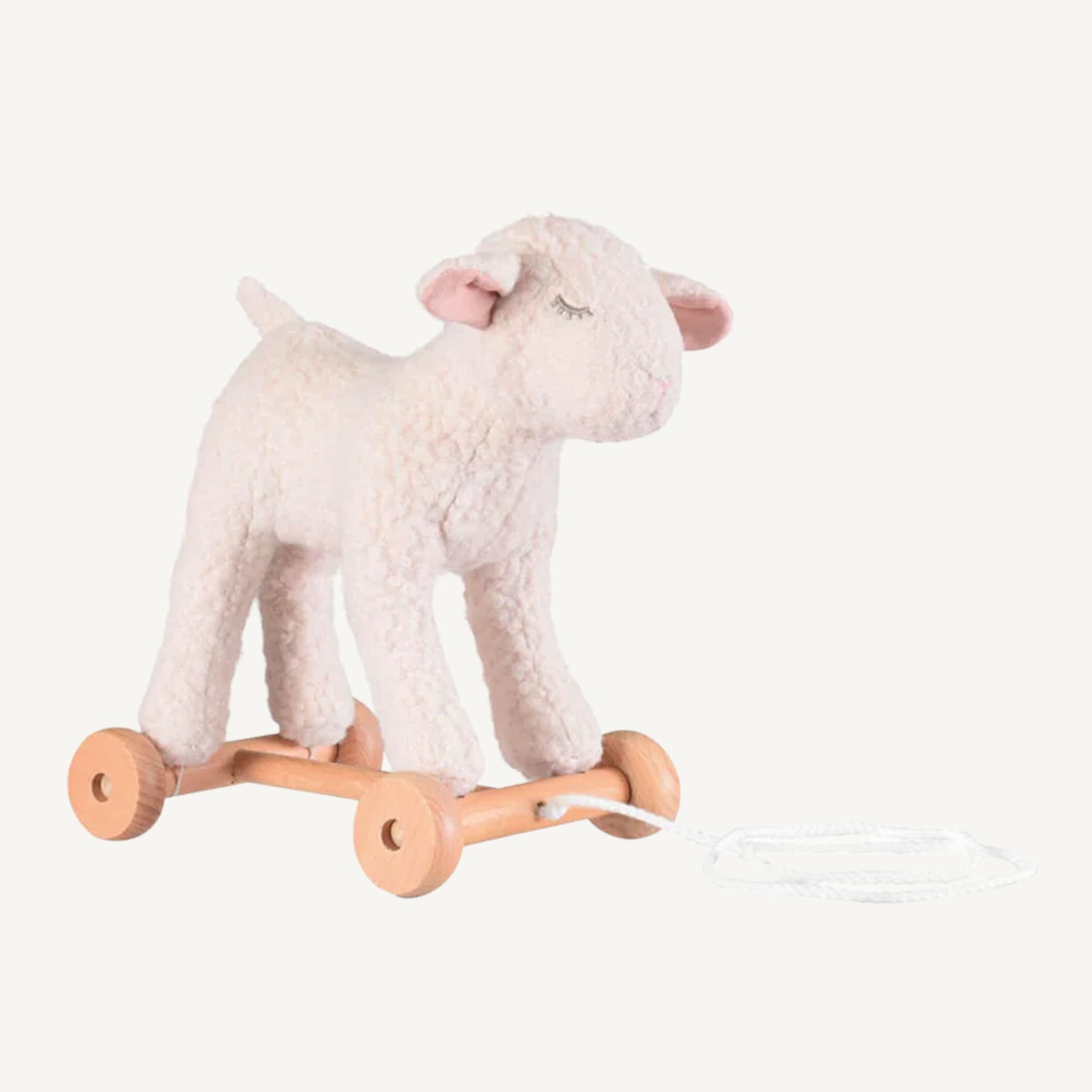 Bring sweetness to every step with this adorable classic toy that will be rolling through the play for years and years. With her soft fleece body and sturdy wooden wheels, Mary the Lamb Pull-Along Toy is always ready to follow along for playtime or cuddles.