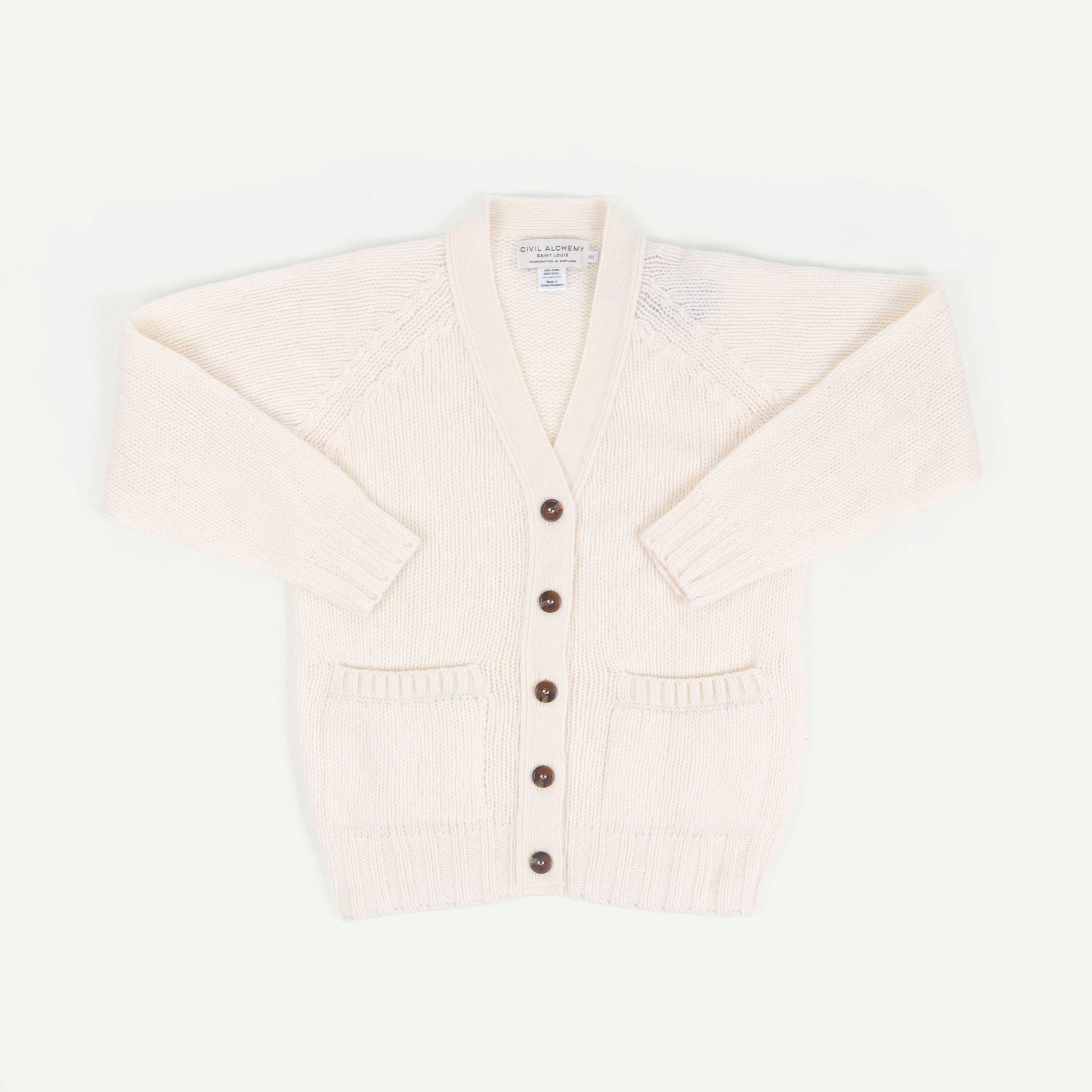 The Vee Cardigan in Snow White is a refined expression of classic knitwear. Made in the United Kingdom exclusively for Civil Alchemy, it is crafted from 100% pure new wool, offering natural warmth, breathability, and a luxuriously soft hand. The seamless construction ensures lasting comfort, while the button-up front, ribbed cuffs and hem, and two front pockets create a polished, versatile silhouette. Lightweight yet insulating, this cardigan is perfect for layering or wearing on its own with timeless style.